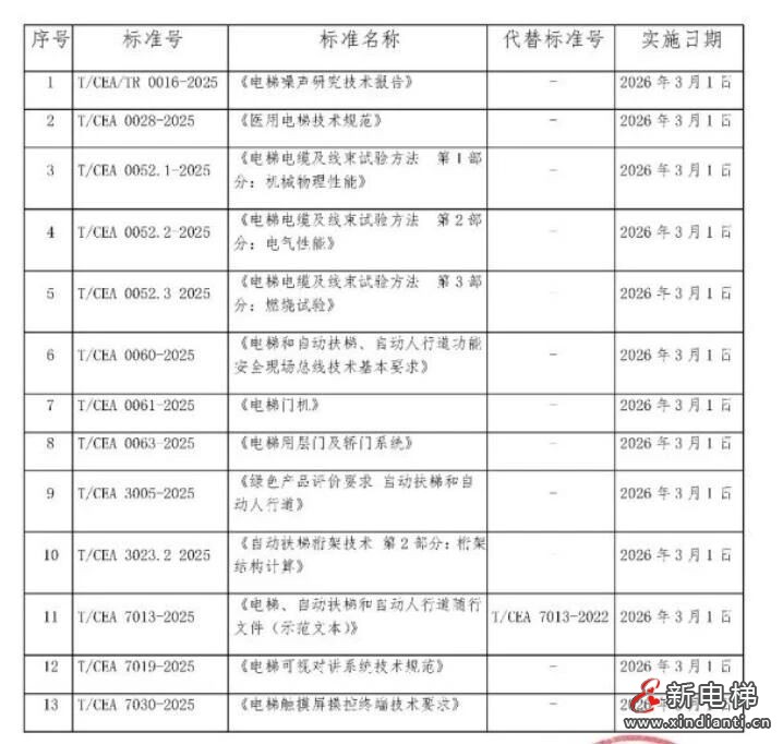 根据《中国电梯协会标准工作委员会工作细则》的规定,电梯协会批准发布《电梯噪声研究技术报告》等13 项团体标准。