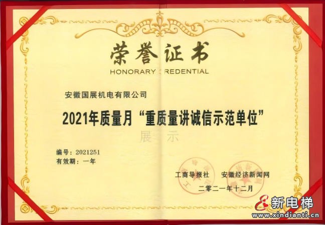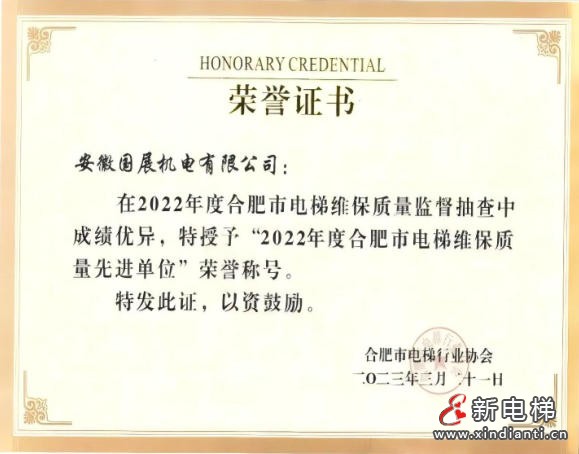 安徽国展时刻严格要求自己、在维保服务质量方面做的非常好、非常突出、多次被甲方称赞、表扬:是电梯行业优秀企业。