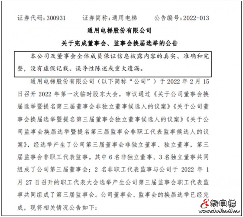 2月15日,通用电梯(300931)近日发布公告,选举徐志明为第三届董事会董事长,任期三年。