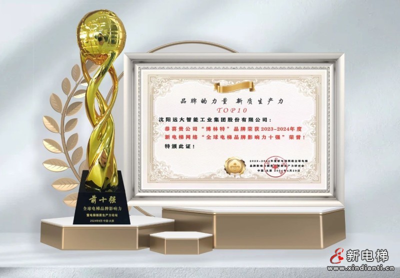 作为中国民族电梯品牌的优秀代表,沈阳远大智能工业集团博林特电梯凭借多年来的卓越品质与服务,荣获新电梯网络2023-2024年度“全球电梯品牌影响力前十强”“中国电梯品牌影响力十强”“经典工程十强”“中国电梯大修改造、安装、维保模范单位30强”等奖项。