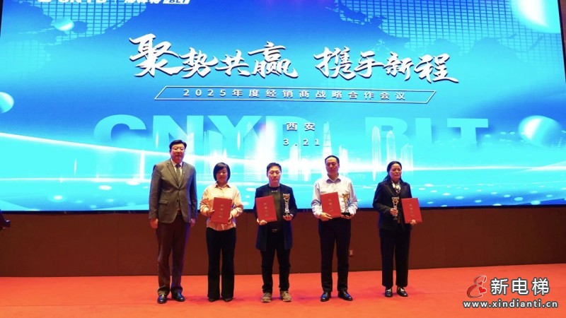 大会现场,远大智能博林特电梯为长期合作的经销商颁发“金鼎伙伴奖”及“携手共进奖”。