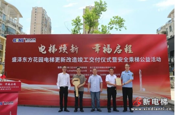 2025年6月30日,吴江区首批次国债支持老旧住宅电梯更新改造--盛泽东方花园29台电梯更新改造工程正式交付。吴江区市场监督管理局、吴江区盛泽镇建设管理办公室、江苏省特检院吴江分院、吴江区盛泽镇澜溪社区各级领导,东方花园业主代表、咏歌物业相关负责人、康力电梯相关负责人共计50余人,共同见证“电梯焕新·幸福启程”。