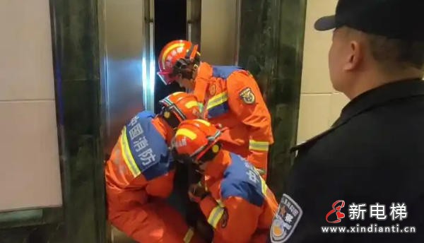 湖南长沙外卖小哥凌晨被困电梯 消防员紧急救援化险为夷