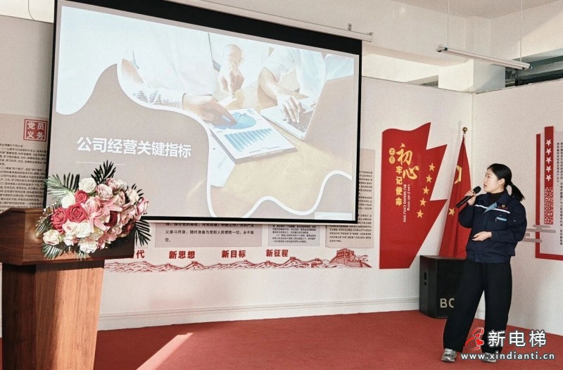 董事长在会上发表重要讲话,作为会议核心环节,全面明确2026年组织架构、人事任命与发展目标。2026年公司组织架构保持稳定,总经理张树艳分管公司全面经营、企划宣传、销售安装部及分公司,聚焦市场拓展与品牌建设;副董事长周杨分管行政、质控、维保修理部、检测监察部、生产营销部,主攻制度建设、安全生产与清欠工作。