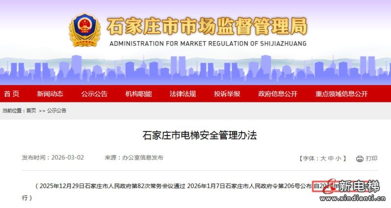 《石家庄市电梯安全管理办法》已于2026年3月1日起正式施行,其中明确规定电梯维护保养服务须明码标价,旨在提升透明度,保障公众权益。维保透明化:电梯维保单位必须公开服务项目和收费标准,杜绝隐性收费,推动市场良性竞争。