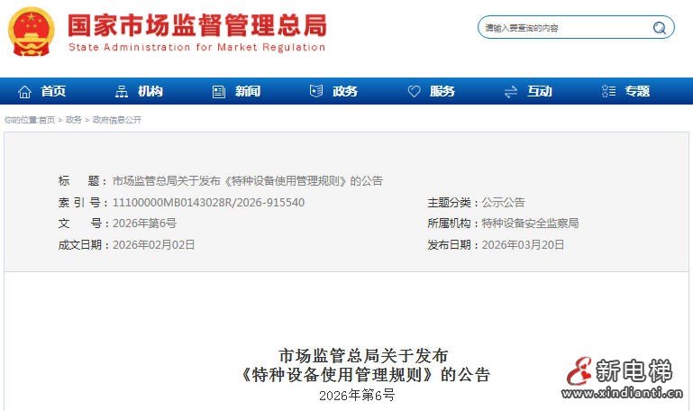 市场监管总局发布2026版《特种设备使用管理规则》 5月1日起施行