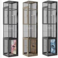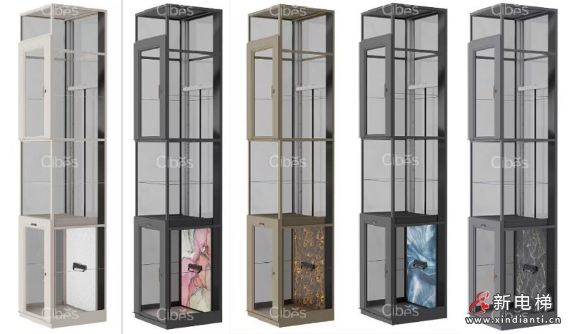 四面观光井道,轿厢可定制木纹纹理、大理石纹理或白色背光图案系列背景,梯身标配6个金属粉末喷涂颜色可选,平开门,梯门定制实木镶嵌式门拉手。