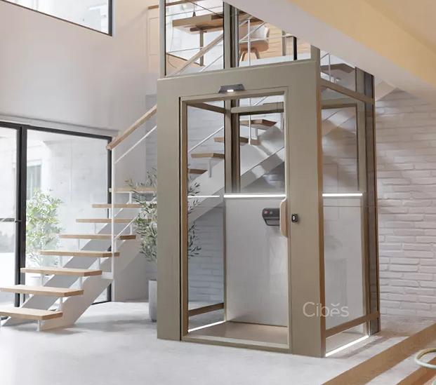 Cibes西柏思 V80 系列是一款灵活定制的家用升降平台电梯,全景观光井道设计,小至1平方米起,可安装在楼梯中间,靠墙一角,现有井道内,或家中楼板开孔等位置。