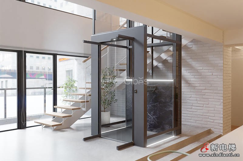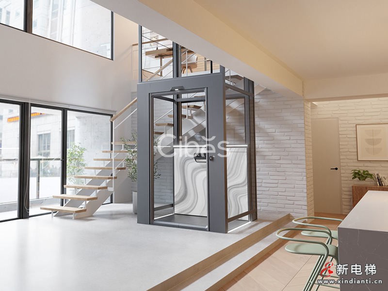 V80 时尚版采用360°全景观光玻璃井道,采光性好,美观安全⼜实⽤,可根据家装风格随心搭配: