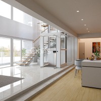 自带一体化井道,标配为三面观光,可选五面观光井道,更通透,更明亮。 平台内控制面板标配白色,标配⽩⾊背景,让电梯设计回归简约生活。
