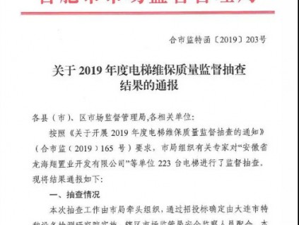 据合肥市市场局发布的《关于2019年度电梯维保质量监督抽查结果通报》获悉:迅达(中国)电梯合肥分公司维保的欢乐颂购物中心项目、上海三菱电梯有限公司安徽...[详情]